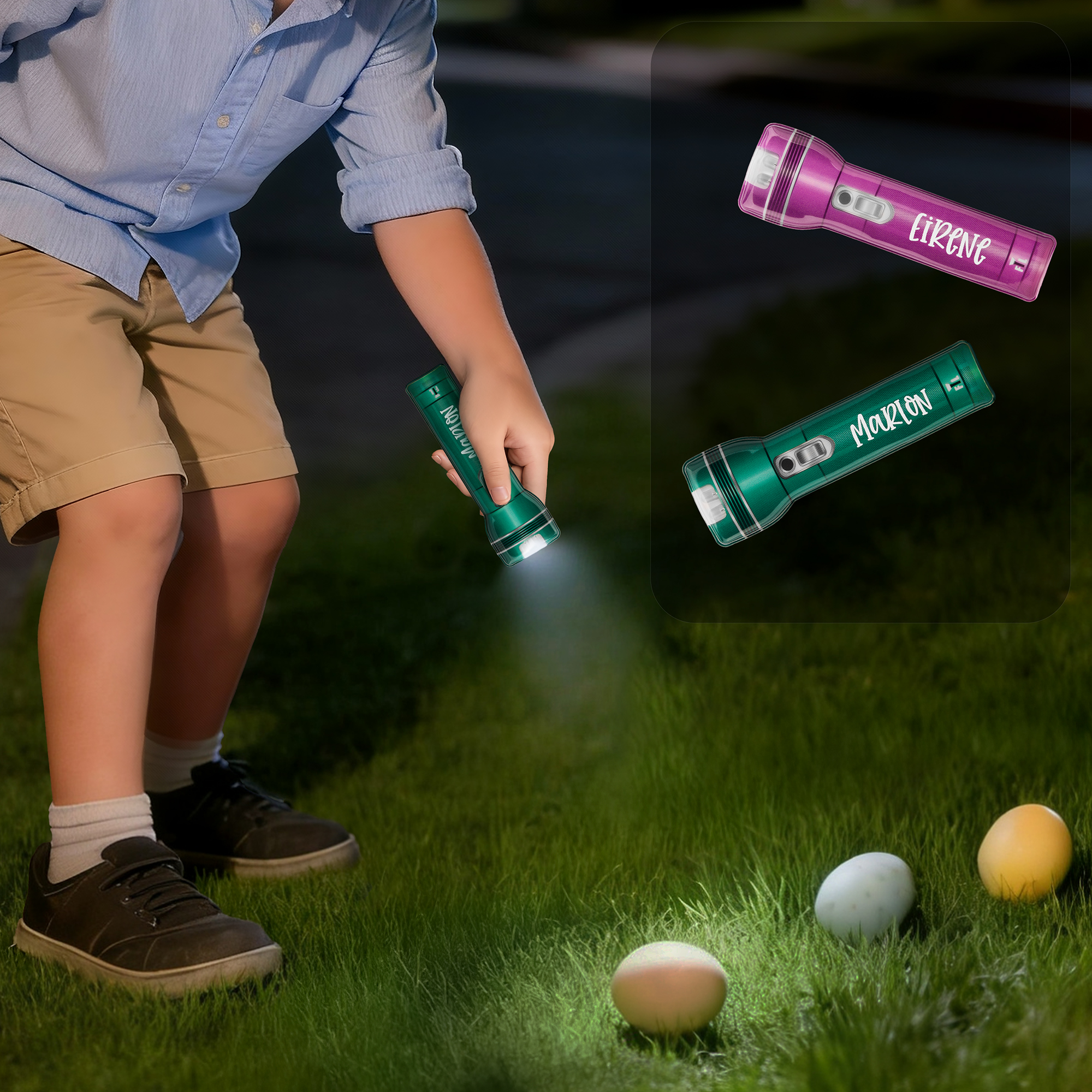 Personalized Name - Each flashlight can be customized with a name, turning a practical item into something personal and special. The printed name stands out clearly against the multicolor surface, helping kids easily spot their own torch at home, school, or camp. It adds a thoughtful touch to Easter basket stuffers and party favors.
