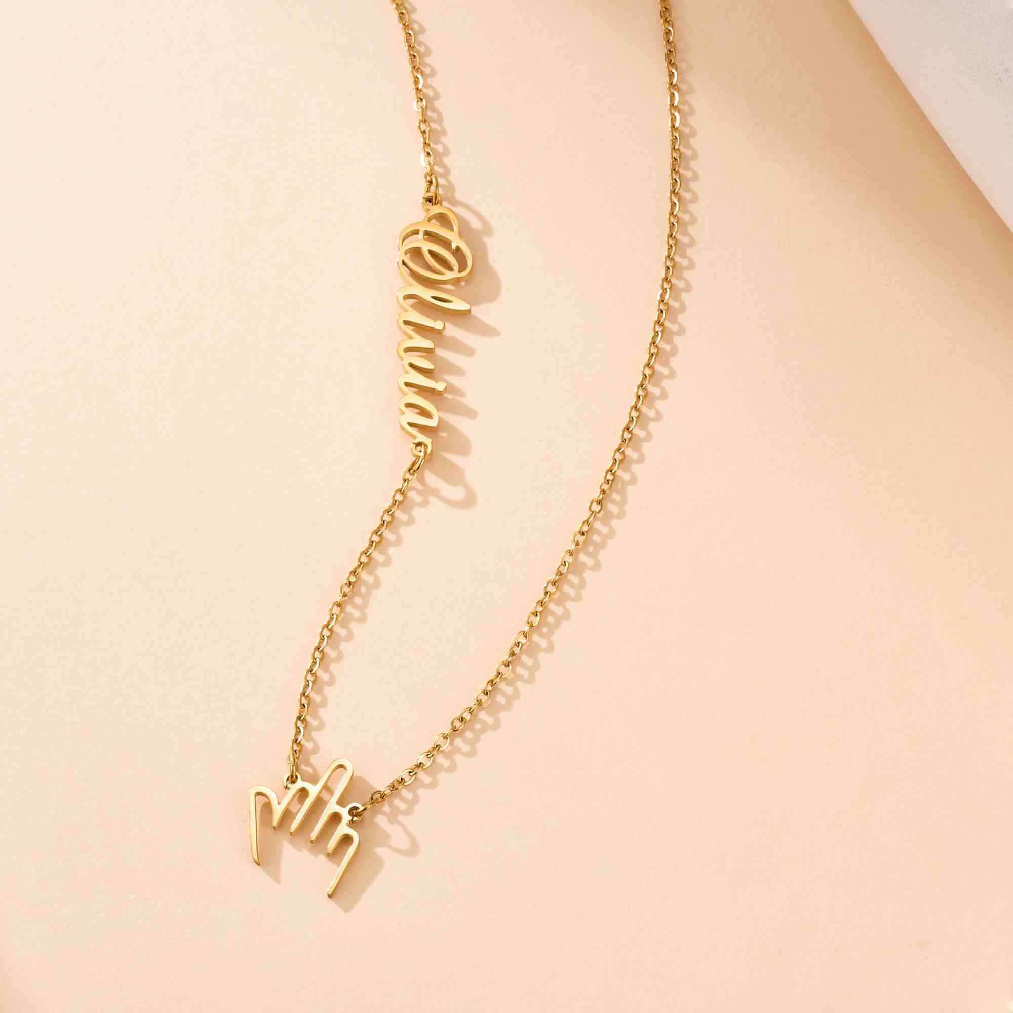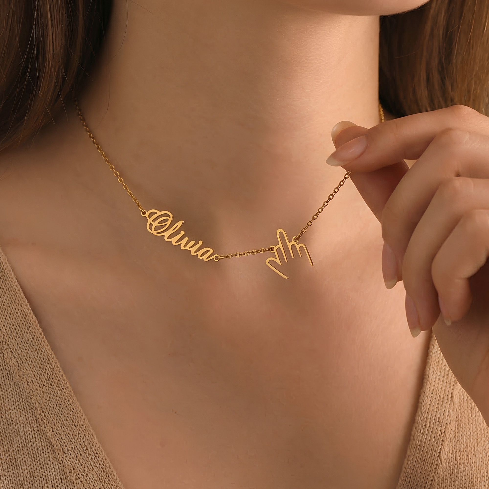 Bold Minimalist Design - This sideways name necklace pairs a tiny middle finger charm with clean, simple lettering. The playful “F**k You” gesture adds a cheeky edge while keeping a sleek, everyday look that stands out without being loud.